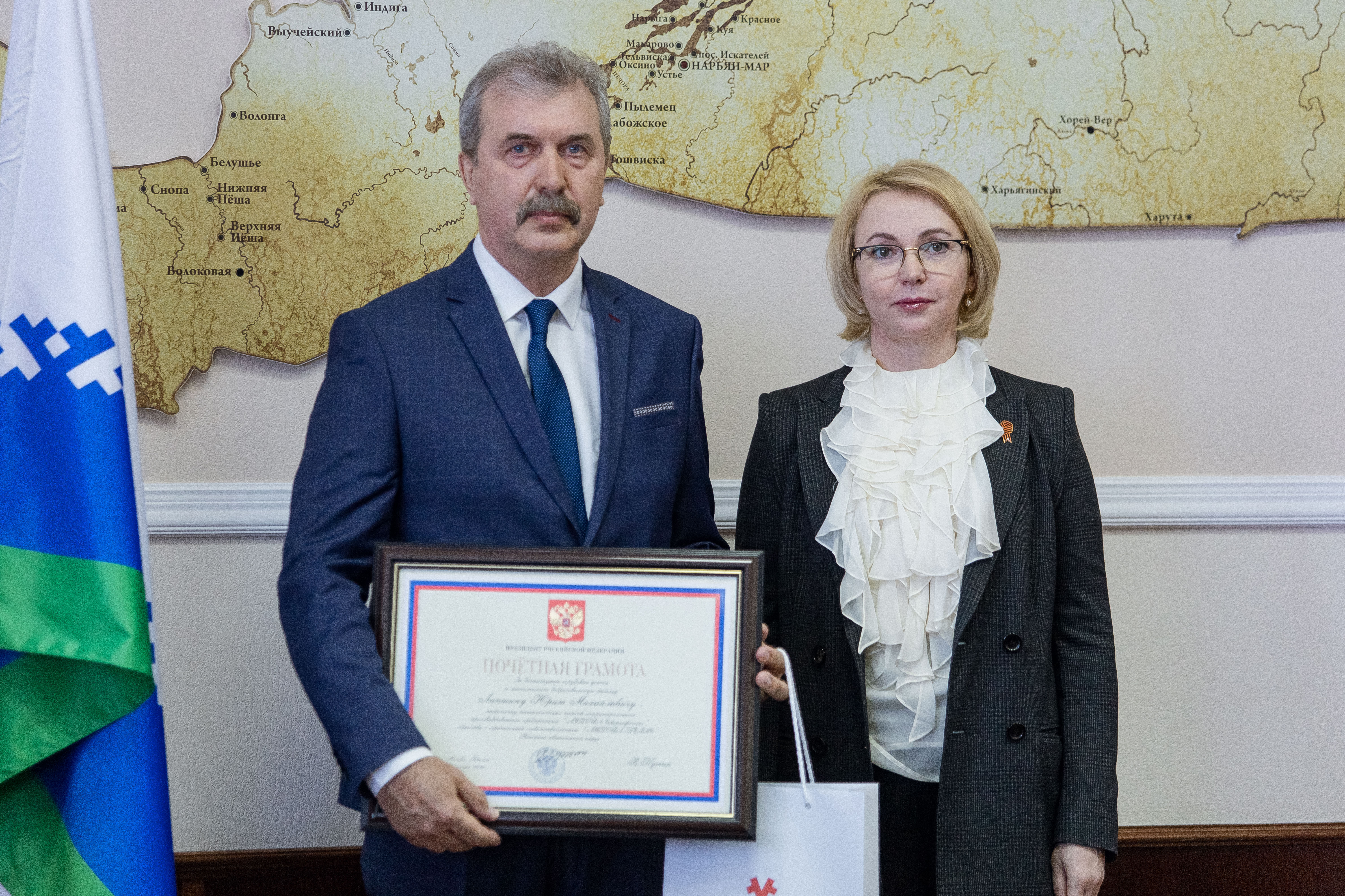 Распоряжением Президента Российской Федерации от 30 ноября 2024 года № 386-рп за достигнутые трудовые успехи и многолетнюю добросовестную работу Почетной грамотой Президента Российской Федерации награжден Лапшин Юрий Михайлович, машинист технологических насосов цеха по добыче нефти и газа предприятия «Севернефтегаз».