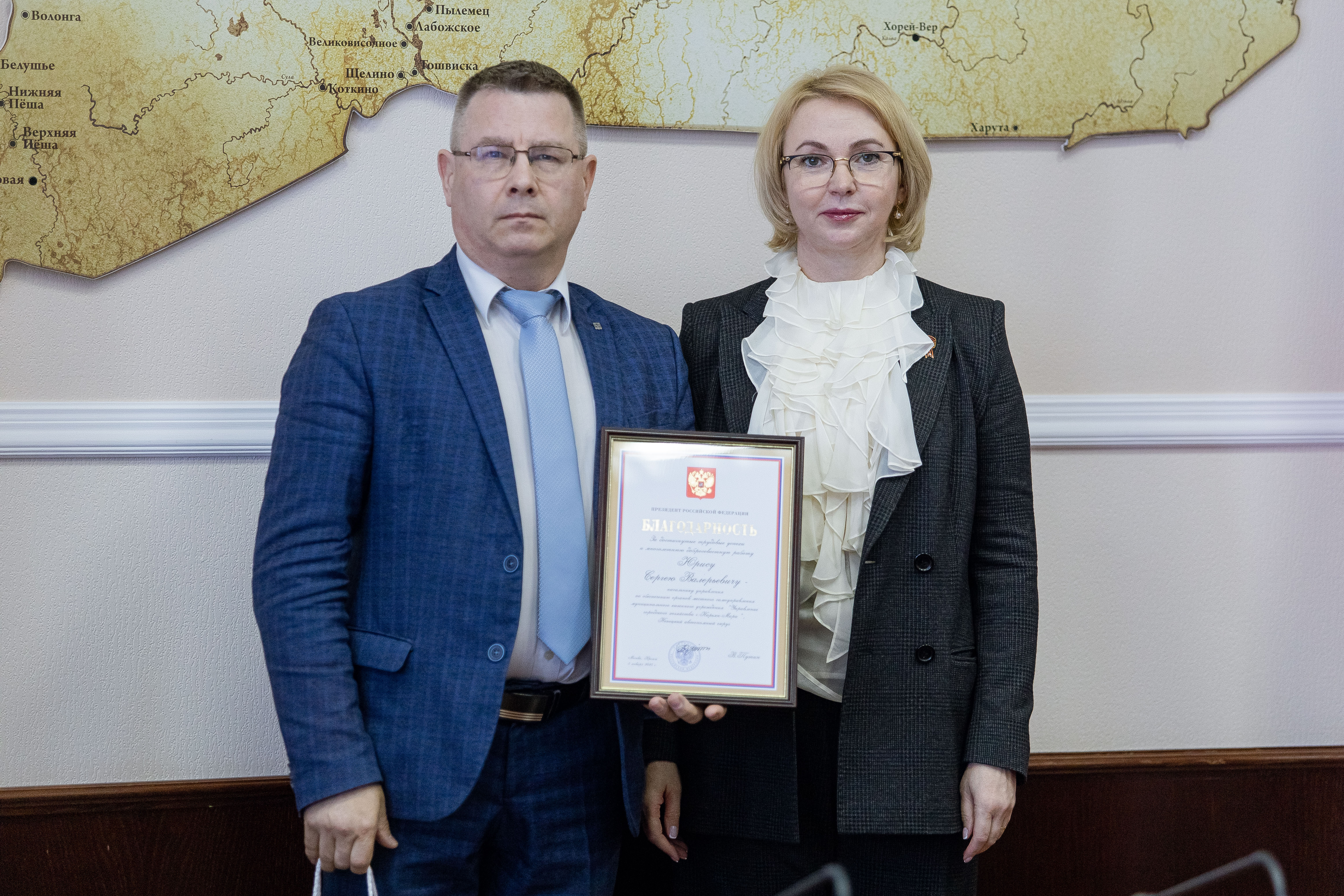 Распоряжением Президента Российской Федерации от 5 января 2025 года № 3-рп за достигнутые трудовые успехи и многолетнюю добросовестную работу Благодарность Президента Российской Федерации объявлена Юрис Сергею Валерьевичу, начальнику управления по обеспечению органов местного самоуправления «Управление городского хозяйства города Нарьян-Мара».